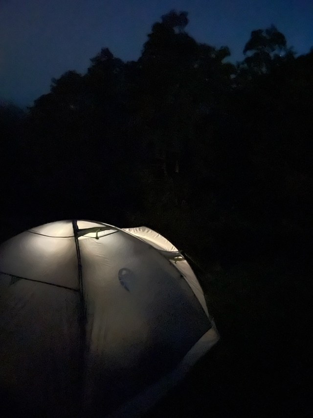 - Voor het overnachten onderweg gebruikten wij een klein koepeltentje.