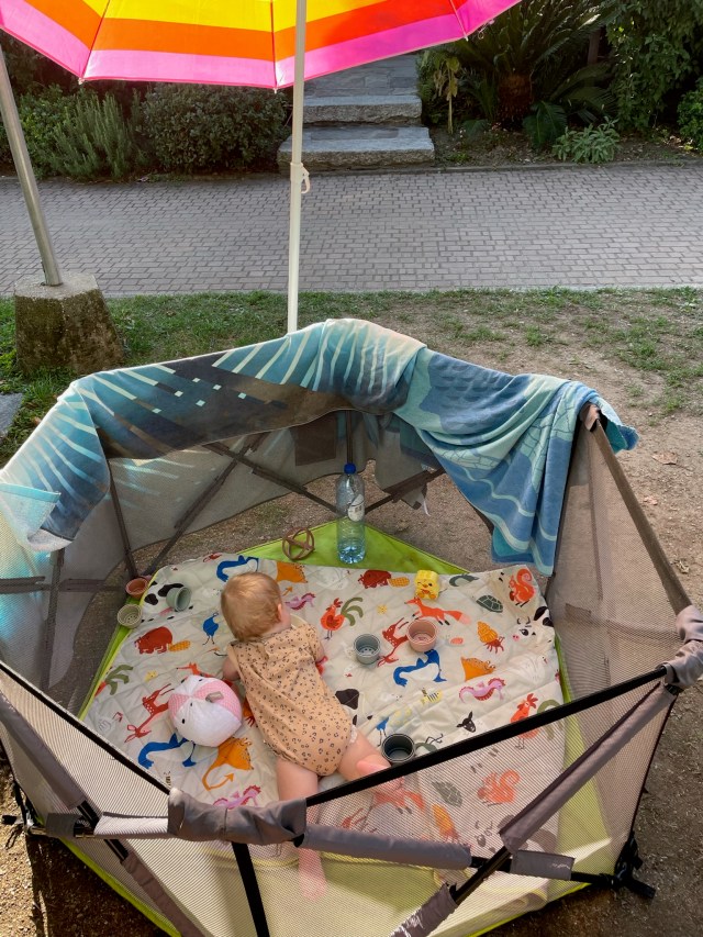 - Reisbox: Heb je een klassiek campingbed mee? Dan kan die ook dienen als een veilige speelruimte voor je baby. Wij hebben zelf een inklapbare versie, gemaakt van een netstof. Dit is vooral prettig als je baby al kruipt, zo kunnen ze lekker hun gang gaan en heb jij je handen vrij.