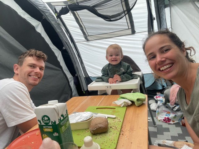 - Kamperen betekent waarschijnlijk ook een flink stuk rijden! Ondanks dat we gewend waren om lange autoritten te maken (ongeveer 2 uur) met ons gezin, was het rijden met een baby over zo’n lange afstand een nieuwe uitdaging. In ons geval werden vooral onze pauzes langer, maar eerlijk gezegd vonden we dat eigenlijk ook ontspannender. In deze blog lees je meer over autorijden met een baby.