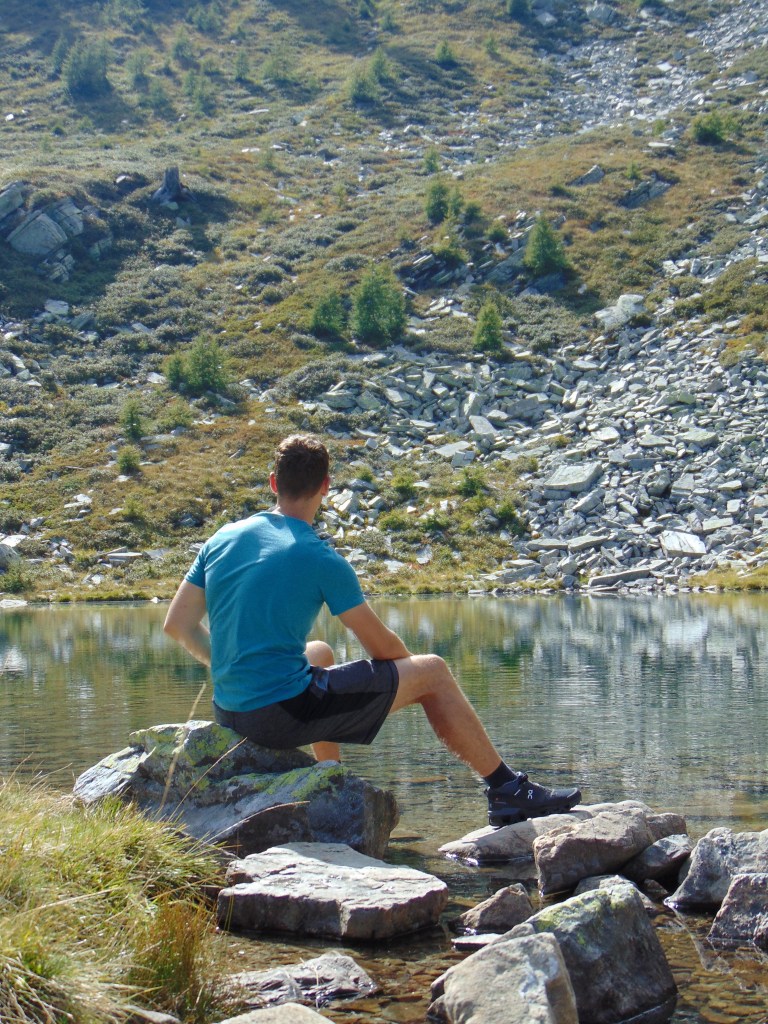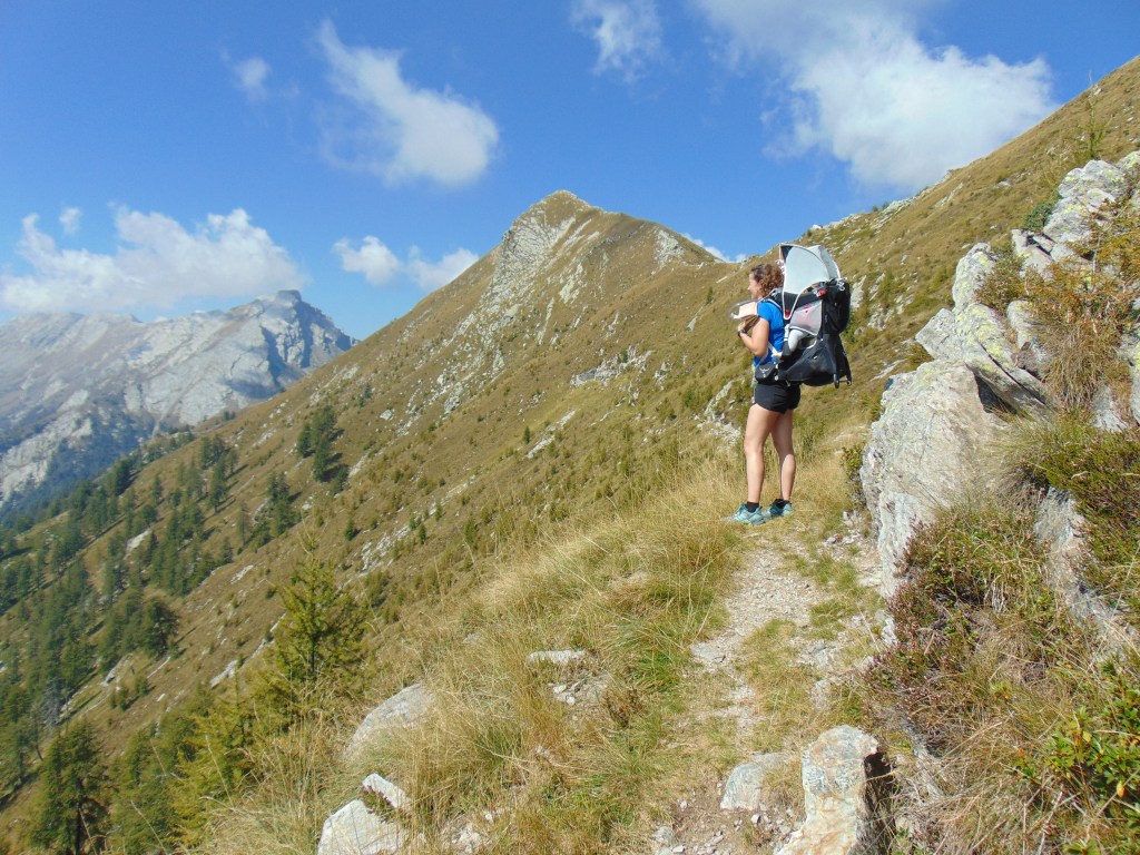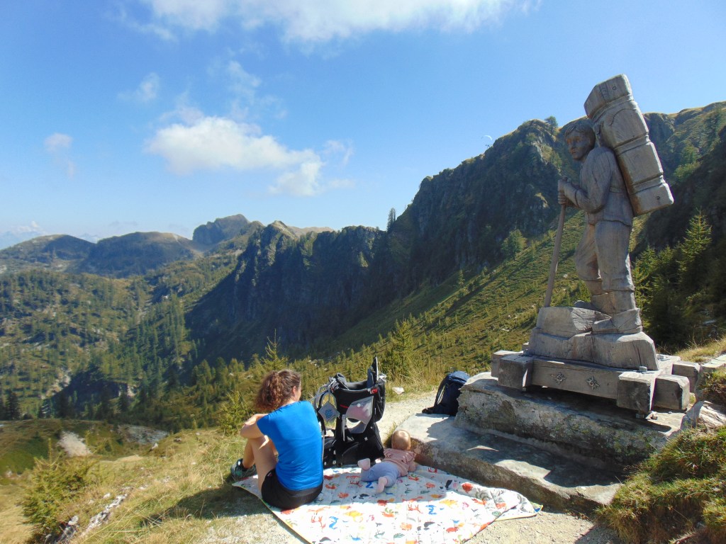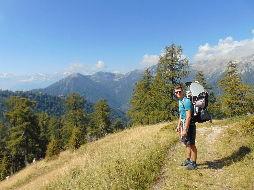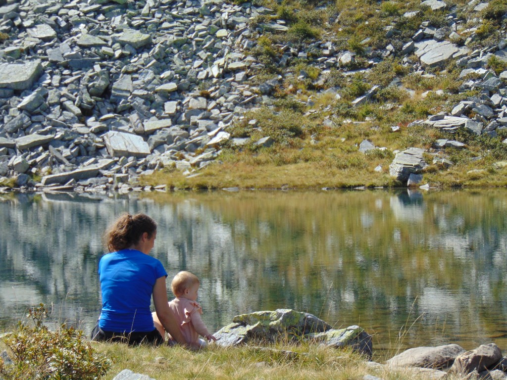 Vanaf dat punt was er nog de mogelijkheid om naar een ander klein meertje te wandelen, maar na ons tunnel avontuur hadden we het eigenlijk wel gezien. We besloten het pad te nemen dat ons terugbracht naar de plek waar we eerder onze pauze hadden gehouden. Vanaf daar volgden we opnieuw hetzelfde pad naar beneden. Onderweg was het uitzicht overal zo prachtig dat we natuurlijk veel langer deden over de terugweg dan normaal, terwijl we overal foto’s maakten. Lúa was moe en sliep bijna de hele terugweg in haar rugdrager. Terug bij de Funivia overwogen we even om snel iets te eten in het restaurant, maar vanwege het evenement was het erg druk. Daarom besloten we dat als we nu naar beneden zouden gaan, we nog op tijd terug zouden zijn op de camping.