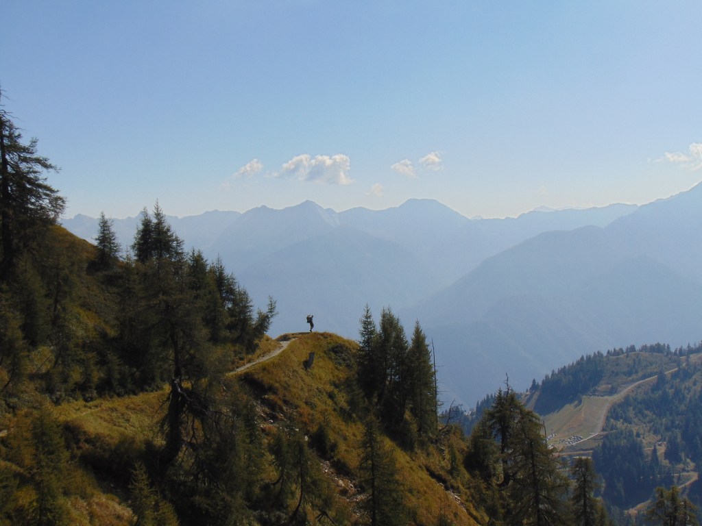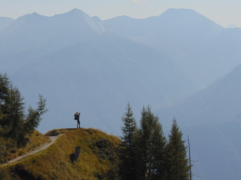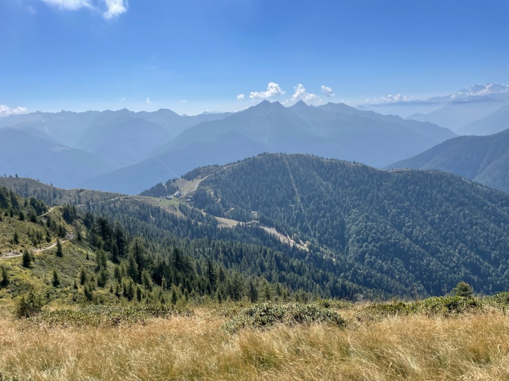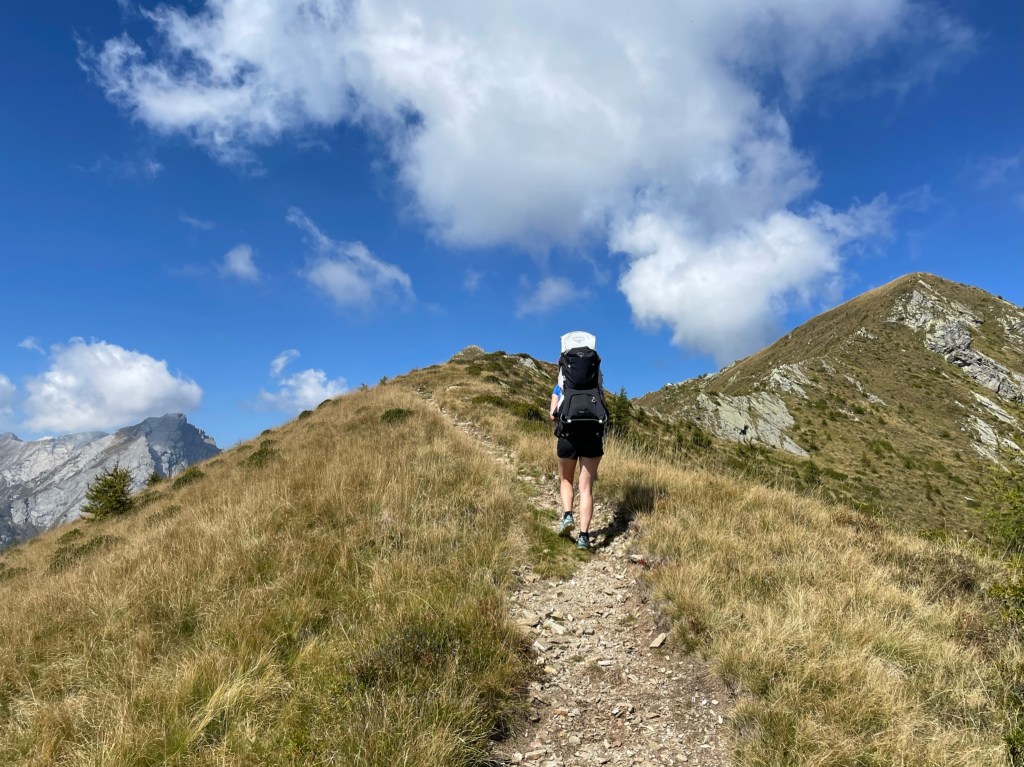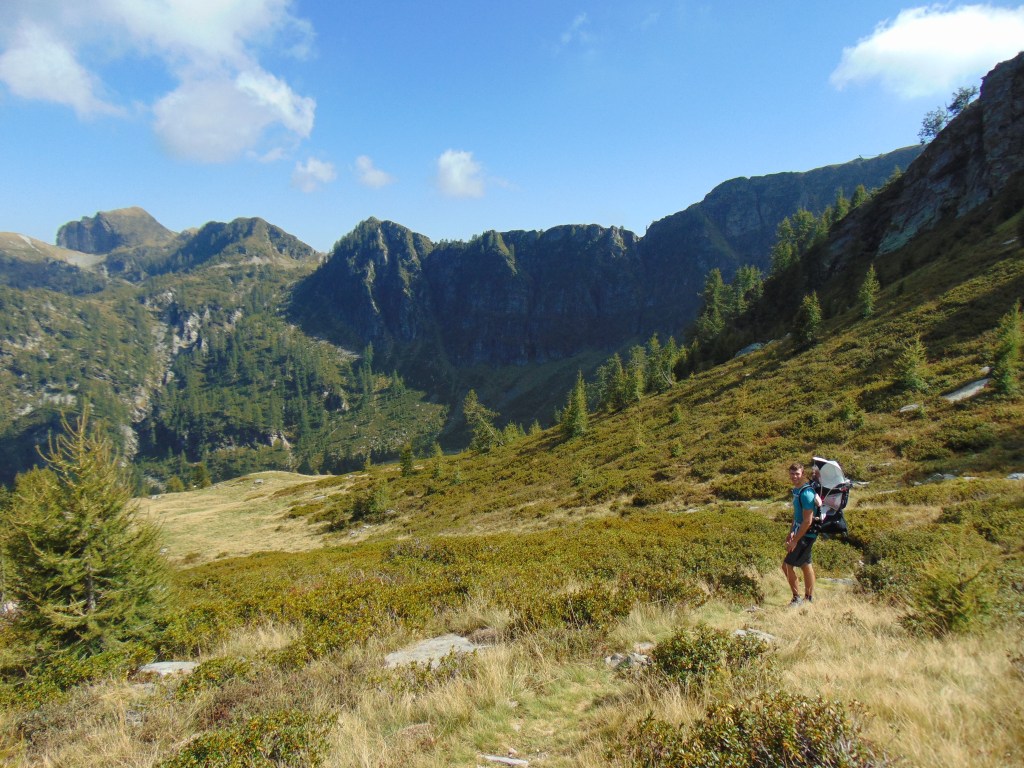 Vanaf dat punt was er nog de mogelijkheid om naar een ander klein meertje te wandelen, maar na ons tunnel avontuur hadden we het eigenlijk wel gezien. We besloten het pad te nemen dat ons terugbracht naar de plek waar we eerder onze pauze hadden gehouden. Vanaf daar volgden we opnieuw hetzelfde pad naar beneden. Onderweg was het uitzicht overal zo prachtig dat we natuurlijk veel langer deden over de terugweg dan normaal, terwijl we overal foto’s maakten. Lúa was moe en sliep bijna de hele terugweg in haar rugdrager. Terug bij de Funivia overwogen we even om snel iets te eten in het restaurant, maar vanwege het evenement was het erg druk. Daarom besloten we dat als we nu naar beneden zouden gaan, we nog op tijd terug zouden zijn op de camping.