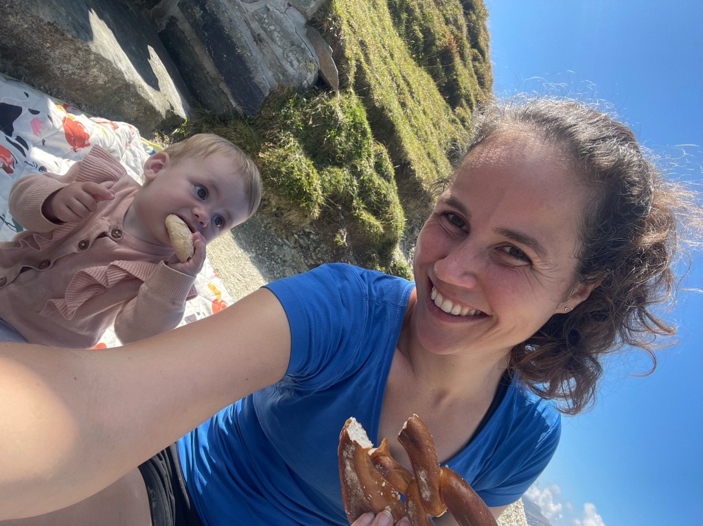 Lúa gaf dit keer wat sneller aan dat ze er genoeg van had. Gelukkig bevonden we ons op dat moment op een prachtig uitzichtpunt. Hier spreidden we ons picknickkleed uit en genoten we van een smakelijke lunch met broodjes. Het was eigenlijk hetzelfde punt waar we de vorige keer omgedraaid waren vanwege het beperkte zicht. Maar deze keer werden we beloond met een adembenemend uitzicht!
