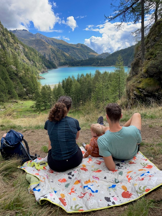 Na enkele dagen met wisselvallig weer op de camping in Cannobio, brak er eindelijk een strakblauwe lucht door. Een perfecte dag voor een bergwandeling met onze baby Lúa.Hoewel het weer een flink stuk rijden was, waren we inmiddels behoorlijk bedreven geraakt in het inpakken van de auto. Terwijl Riccardo zich na het ontbijt over Lúa ontfermde, zorgde Nabria voor het inpakken van onze tassen en het vullen van de waterzakken.