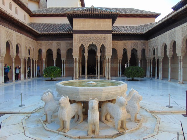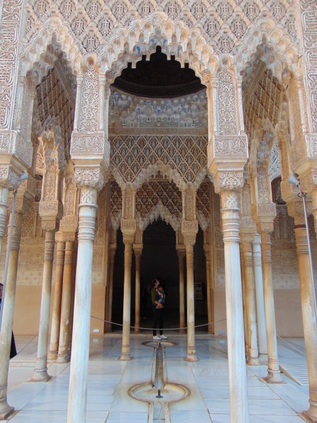 Daarna was het tijd voor het Nasrid Paleis. En wauw, dit was voor ons echt de kers op de taart. Het was zo indrukwekkend! Het leuke was dat Lúa ook duidelijk onder de indruk was. Deze keer zat ze bij Nabria in de draagzak en klonken er verschillende ‘oh’s en ‘ah’s terwijl ze vaak met haar handje probeerde iets aan te raken (wat helaas voor haar niet toegestaan was). De helft van de foto’s die we die dag hebben geschoten, was van dit paleis.