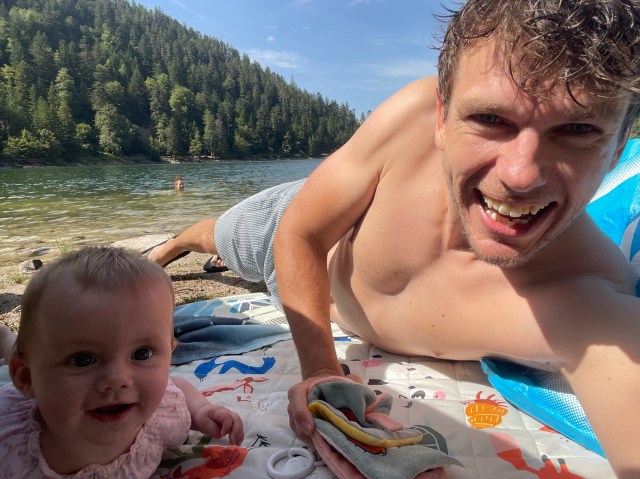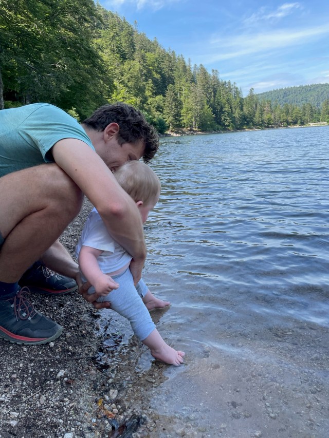 Lac des Corbeaux, een idyllisch bergmeertje nabij La Bresse in de Vogezen, bleek voor ons niet alleen een prachtige wandelbestemming, maar ook een oase van ontspanning. Bijna dagelijks na onze wandelingen namen we een verfrissende duik in het heldere water. We hebben zelfs een dag de hele dag heerlijk aan het water gelegen, waarbij ook Lúa lekker in het water kon spetteren. De temperatuur van het water was ook erg aangenaam, heerlijk om af te koelen maar niet te koud voor Lúa om ook lekker in te spetteren.