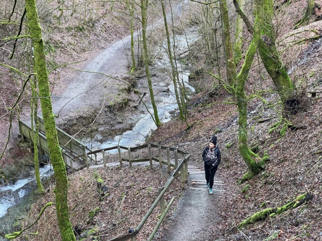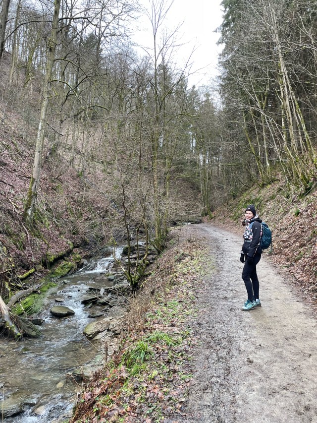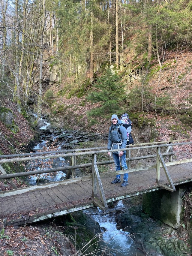 Het pad slingert door een soort kloof over een aantal bruggetjes, zoals de naam al doet vermoeden. Het is een rondwandeling van ongeveer 5 kilometer. Wij hadden onze dochter Lúa in de kinderdrager bij ons, maar het is ook zeker een leuke route om met kleinere kinderen te lopen. De route is goed aangegeven en volgt een deel van de Rothaarsteig, zoals eerder beschreven. Je begint met een afdaling en loopt dan weer omhoog, maar het pad is niet erg zwaar.
