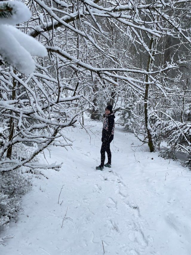 Kahler Asten, de hoogste berg in de omgeving rijst tot een hoogte van 841 meter. Op deze dag werden we toch nog verrast door een pak sneeuw! Het was een prachtig winterwonderland. Boven op de top bevinden zich een hotel, restaurant en een aantal grote parkeerplaatsen. Hoewel parkeren normaal gesproken betaald is, waren de parkeermeters uitgeschakeld toen wij er waren, dus konden we gratis parkeren. Boven op de top zijn er tal van mogelijkheden om te wandelen. Natuurlijk loopt hier weer een deel van de Rothaarsteig, evenals een aftakking ervan: de rondwandeling de Kahler Asten Steig. Wij besloten om lekker tussen de besneeuwde naaldbossen door te slenteren en vooral te genieten van het winterwonderland. Zo’n pak sneeuw heeft toch iets magisch; we maakten zelfs de opmerking dat het bijna voelde alsof we in Lapland waren. Na afloop van de wandeling genoten we van een hapje in het restaurant op de top.