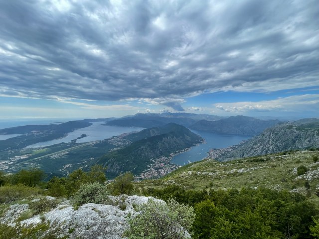 Tijdens de terugrit zien we op Google Maps nog een uitzichtpunt met de titel “Best View of Kotor”, dus dat moesten we natuurlijk zelf bekijken. Inmiddels is Lúa in slaap gevallen, dus gaat Nabria eerst even alleen kijken of het wat is. Vanaf de parkeerplaats kun je namelijk niet zoveel zien, maar als je naar het uitzichtpunt loopt, heb je echt een fantastisch uitzicht over bijna de hele Baai van Kotor! Snel realiseert Riccardo zich dat hij ook nog even met zijn eigen ogen moet gaan kijken. Daarna vervolgen we onze weg terug over alle haarspeldbochten naar Kotor. De terugweg gaat een stuk sneller nu we niet achter een grote touringcar zitten.