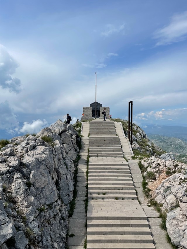 We besluiten toch door te rijden en hebben als bestemming het Njegoš Mausoleum, gelegen op de top van de Jezerski Vrh op een hoogte van 1.657 meter. Dit mausoleum is de laatste rustplaats van de beroemde Montenegrijnse dichter en staatsman Petar II Petrović-Njegoš. De klim naar het mausoleum omvat 461 treden, maar het adembenemende uitzicht op de Baai van Kotor en de omliggende bergen maakt het meer dan de moeite waard.